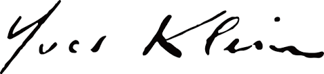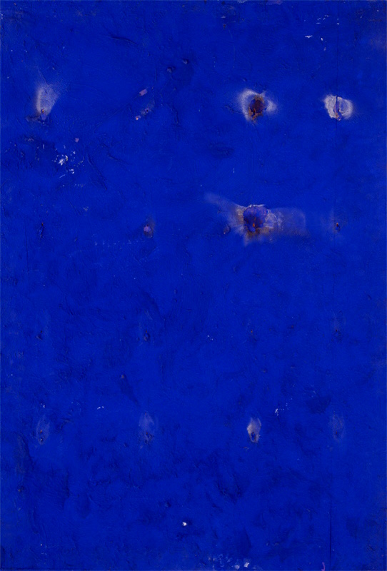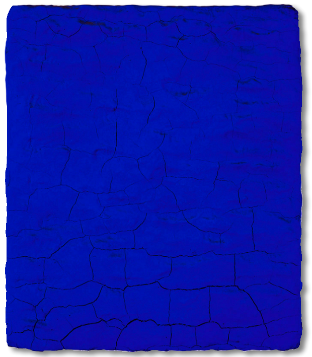 Dans ses monochromes, l’artiste cherche l’harmonie parfaite et l’unité absolue. Il privilégie peu à peu le bleu, en particulier le bleu outremer, qui deviendra sa marque de fabrique.