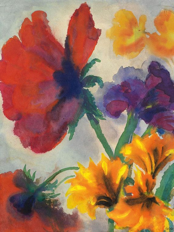 Ses sujets récurrents seront : les paysages du nord de l’Allemagne, souvent marins, les fleurs aux couleurs éclatantes, des tournesols (cf Van Gogh), mais aussi des scènes bibliques visionnaires et des masques et figures exotiques, après un voyage dans le Pacifique (expédition en 1913-1914 avec l'administration coloniale allemande)