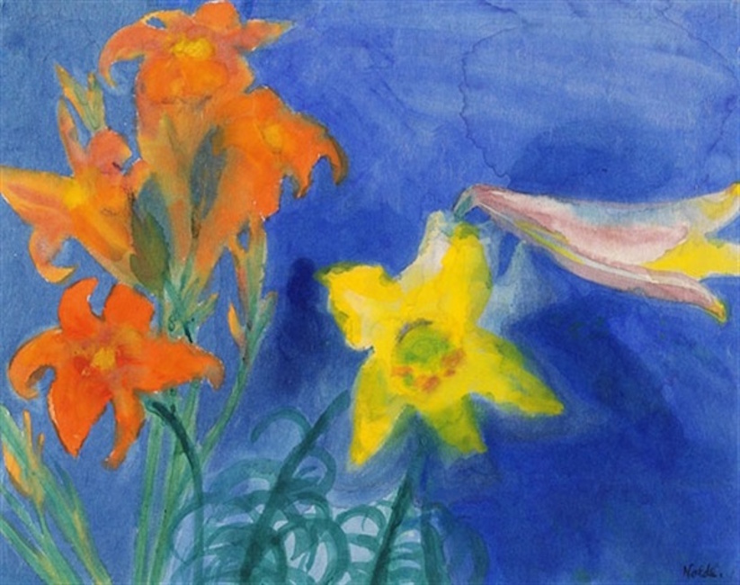Nolde très tôt, vers 1903, découvre les œuvres de Paul Gauguin et celle de Van Gogh selon lesquelles il développe rapidement un style très personnel, marqué par des couleurs vives, des formes expressives, et une forte charge émotionnelle.