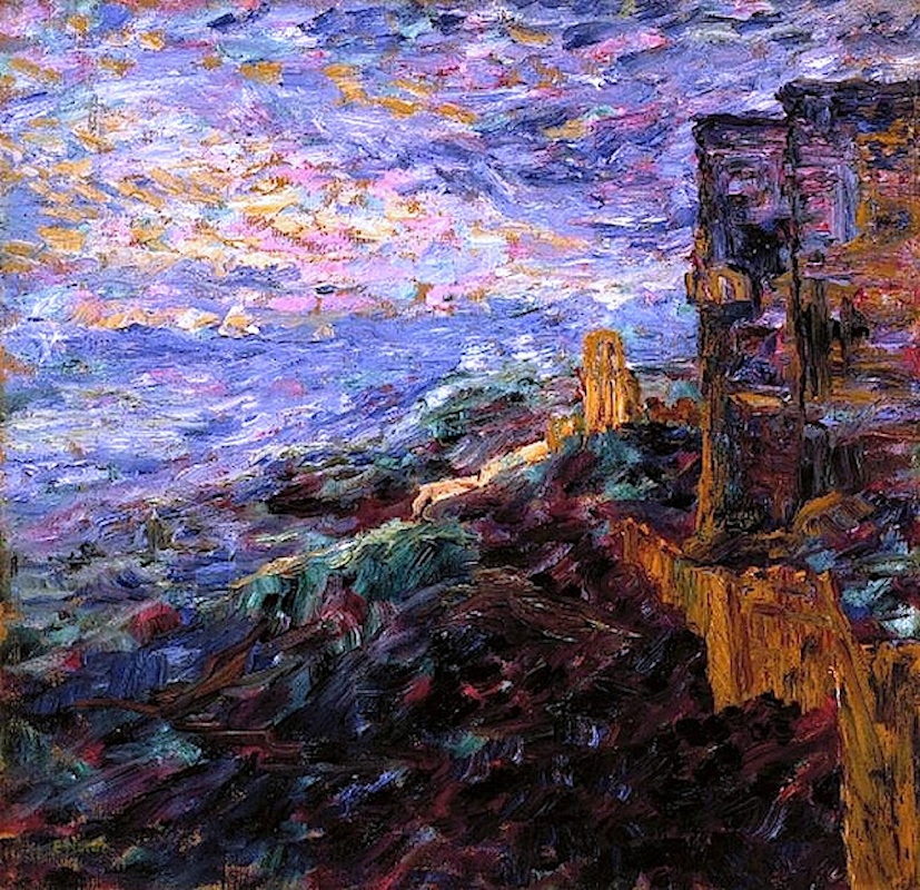 Couleurs pures et contrastées,, pinceau énergique, atmosphère mystique, voire spirituelle