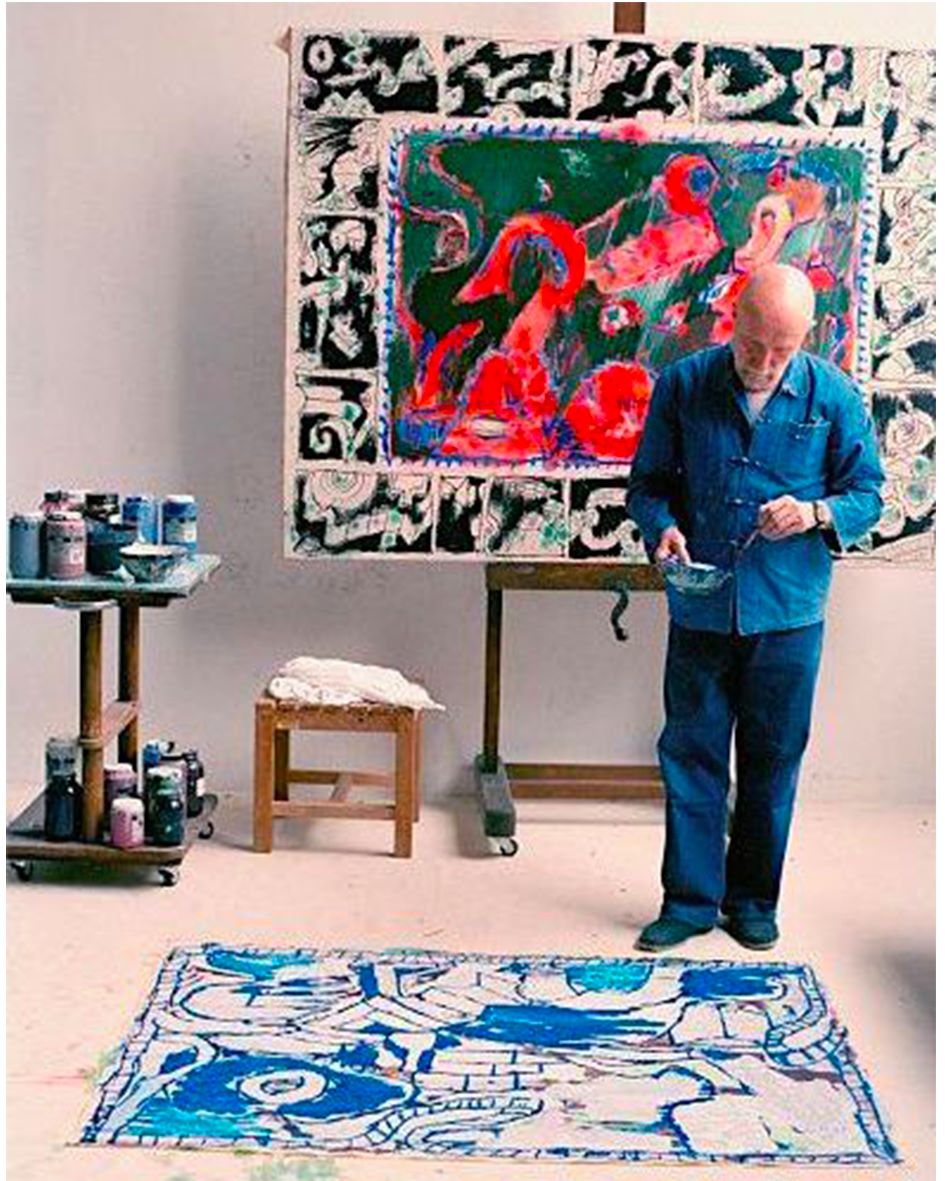 Pierre ALECHINSKY dans son atelier, peignant au sol.Pierre ALECHINSKY 1965 "Central Park"Pierre ALECHINSKY "Et mon bureau"Pierre ALECHINSKY 1968 "Passage du col"