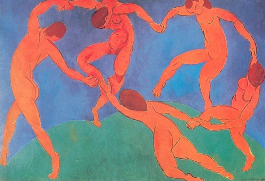Henri MATISSE 1910 "La Danse" (plus que trois couleurs principales très peu nuancées )