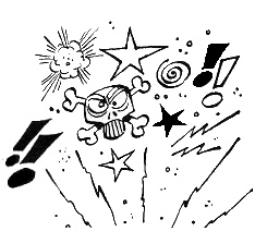 icône, symbole ou petit dessin exprimant une pensée ou un sentiment. Par exemple, une ampoule allumée représente "avoir une idée" , les étoiles indiquent la douleur, une tete de mort, une bombe, un éclair, remplacent les jurons