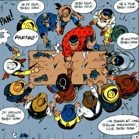 - Ce qui est écrit dans le cartouche. Il peut s’agir de textes courts comme « Pendant ce temps ... » ou « Le lendemain matin... » mais il peut être beaucoup plus étoffé et expliquer ou détailler l’action. Il sert à faire comprendre certaines actions impossibles à restituer par image.
