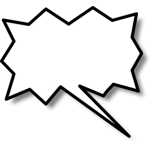 - Forme variable , généralement ovale , qui, dans une vignette, contient les paroles ou pensées des personnages reproduites au style direct. Son graphisme varie selon l'expression ( nuage pour une pensée, bord en dents de scie pour un cri ou éclat de voix)