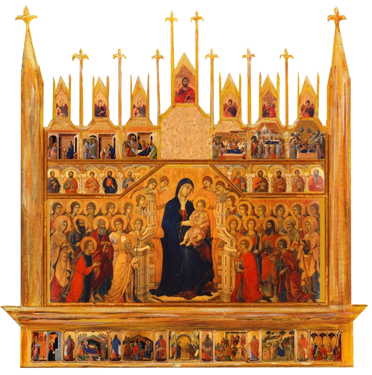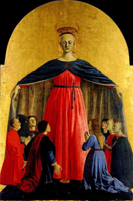 ce n'est que vers 1400 avec l'invention de la perspective que ce type de représentation sera abandonné, les personnages plus grands étant ceux situés plus près, et ceux plus petits étant situés plus loin dasn l'espace représenté.