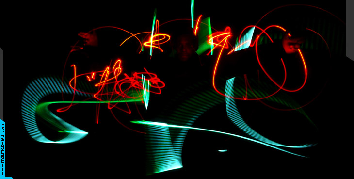 - écriture avec de la lumière, (qui utilise un long temps d'exposition et une sensibilité basse en photographie ou vidéo, afin que le déplacement fait avec la lumière soit visible)