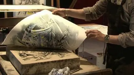 - Technique de production d'images imprimées en séries (voir estampes) dans une presse avec des encres lithographiques. La matrice est une pierre calcaire sur laquelle le lithographe a dessiné avec des craies et encres grasses avant de la traiter. La réalisation d’une lithographie polychrome exige plusieurs matrices différente.