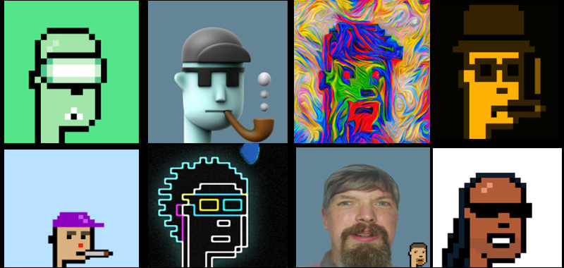 Beeple - mosaique de ses oeuvresavatars cryptopunk vendus en NFT le célèbre chat volant en Gif animé a été vendu en NFT