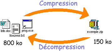 Action de comprimer des fichiers, lors de leur enregistrement , afin qu'ils tiennent moins de place pour les stocker ( sur disque dur ou cle USB), ou pour les transmettre plus rapidement via internet. - Pour ce qui est des documents voir 'Archive' . - La compression des images se réalise lors de l'enregistrement si besoin, selon le type d'extension choisi. enregistrer en jpeg ou gif, png, compressera votre image. Chaque ré-enregistrement successif abimera encore un peu plus la qualité de l'l'image . Ces formats sont dits "destructeurs".