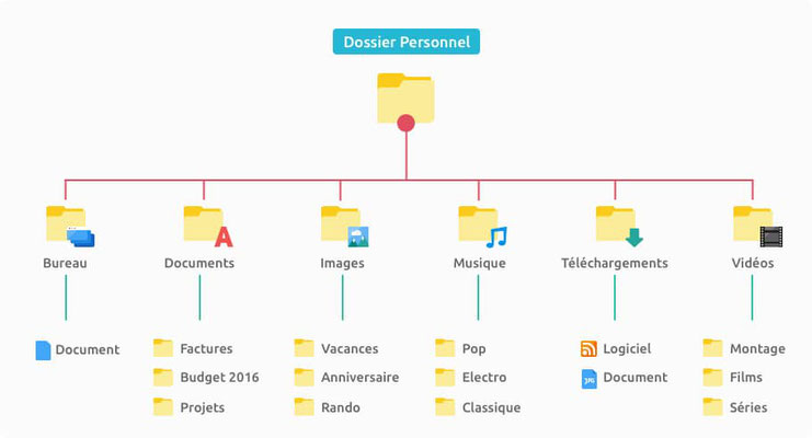 - Semblable au ramifications des branches à partir du tronc pour un arbre, la disposition et l'emplacement des fichiers dans un ordinateur, est une suite de dossiers les uns dans les autres, menant aux fichiers, aux applications . Le logiciel qui permet de se déplacer dans cette grande quantité de dossiers est nommé "explorateur" . On appelle 'chemin' l'indication des étapes successives ( passage d'un dossier à un autre) qu'il faut suivre pour trouver un fichier particulier ou une application à partir du dossier d'origine ( appelé aussi dossier 'racine' ) par exemple : C:\mes documents \ vacances \paysage.jpg indique que le fichier paysage;jpg est dans le dossier 'vacances' , contenu lui même dans le dossier 'mes documents' situé dans le disque dur appelé 'C'.