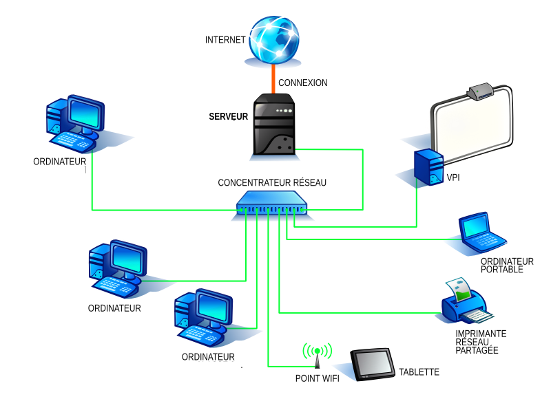 - ordinateurs relies entre eux par connexion filaire ou wifi.