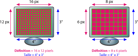 La résolution varie selon le nombre de pixels affichés par rapport aux dimensions