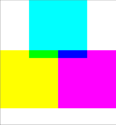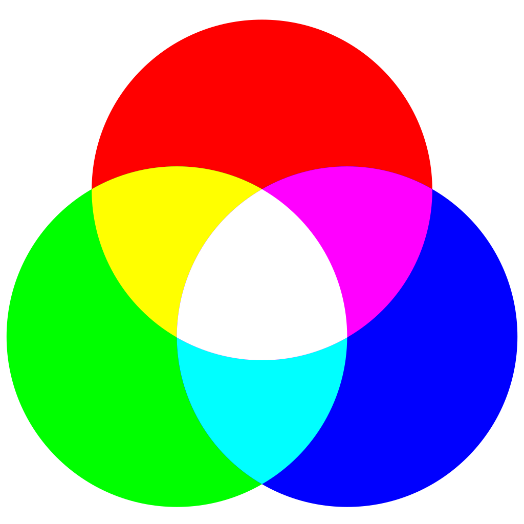 La synthèse lorsque l'on utilise de la couleur-lumière ( lampes, projecteurs) est dite "additive" car lorsqu'on mélange toutes les couleurs entre elles , on obtient du Blanc ( qui est alors la somme de ces couleurs). le Noir est donc ainsi dans ce cas l'absence de couleurs, de lumière.ex: dans une salle obscure telle une salle de concert ou de théatre , si l'on braque en même temps des projecteurs rouge, vert et bleu sur la vedette , elle sera éclairée en blanc !