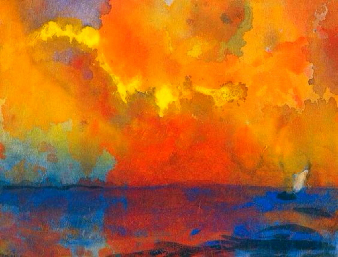 oeuvre abstraite en dominante de tons chauds (orangé, rouge)pomme Dégradé numériqueEmil NOLDE "bateau au coucher du soleil"